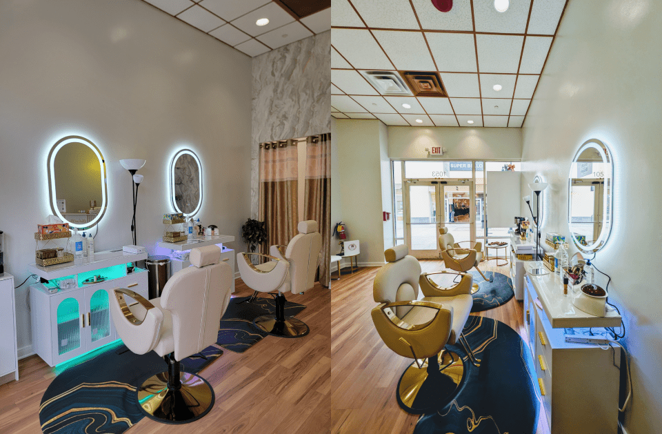 Our white, gold, and marble-themed interior creates a lavish and serene environment for your beauty experience.